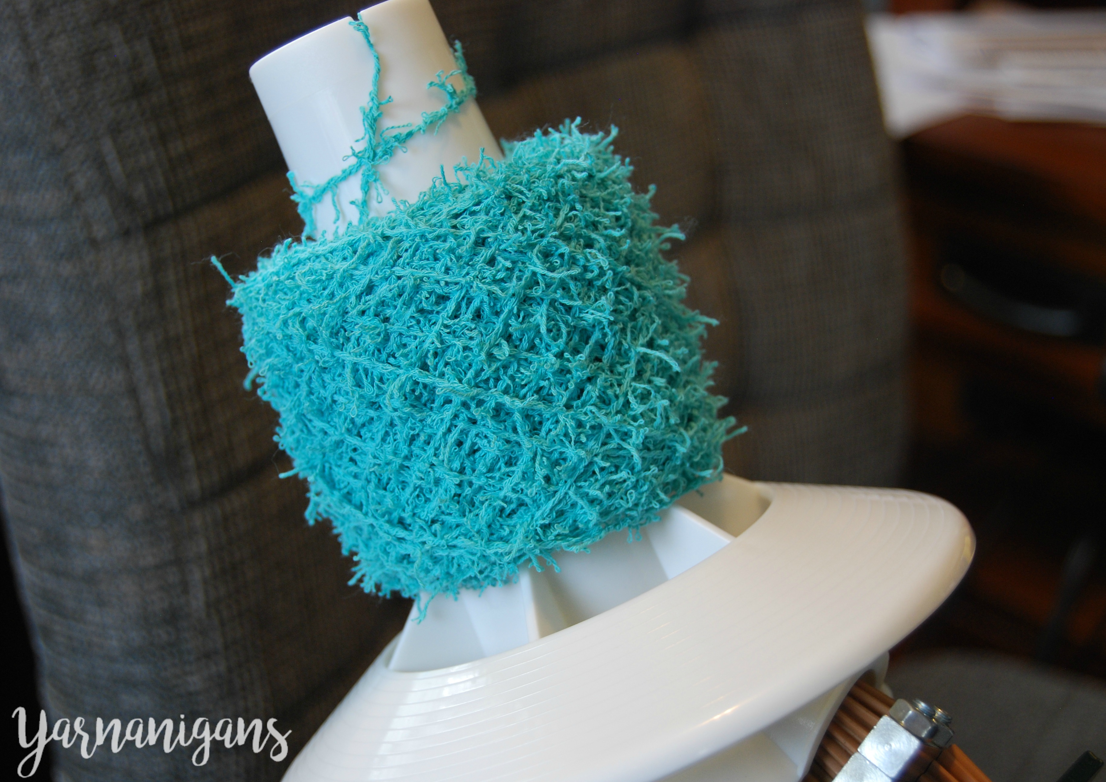 Using two strands of yarn and working with multiple color changes per row required a lot of bobbins and juggling of said bobbins to keep everything from getting tangled. Try to stay organized and work in a back and forth motion when turning (as opposed to turning 360 degrees) to keep everything manageable. Once you get going you’ll find a rhythm that works for you!