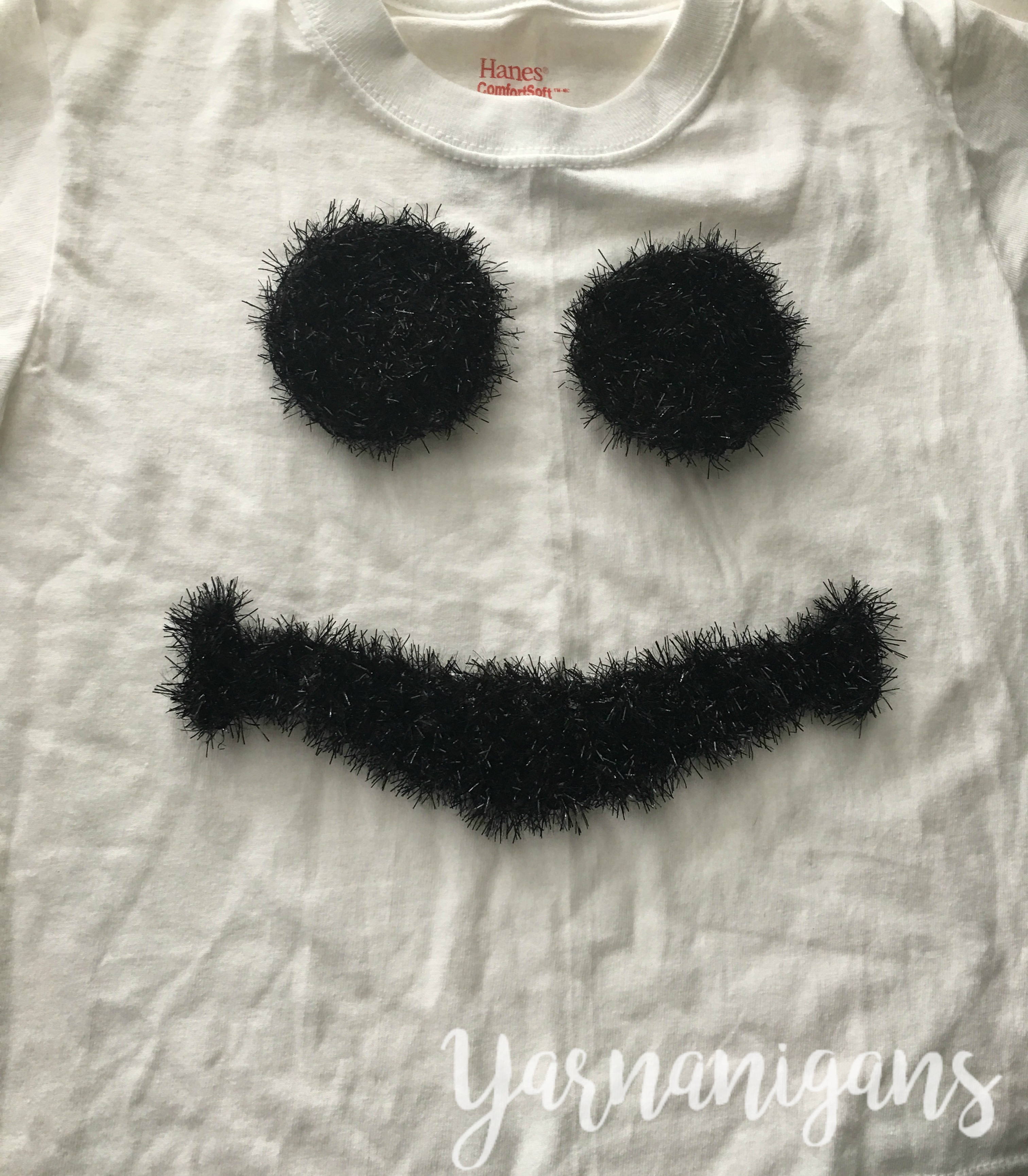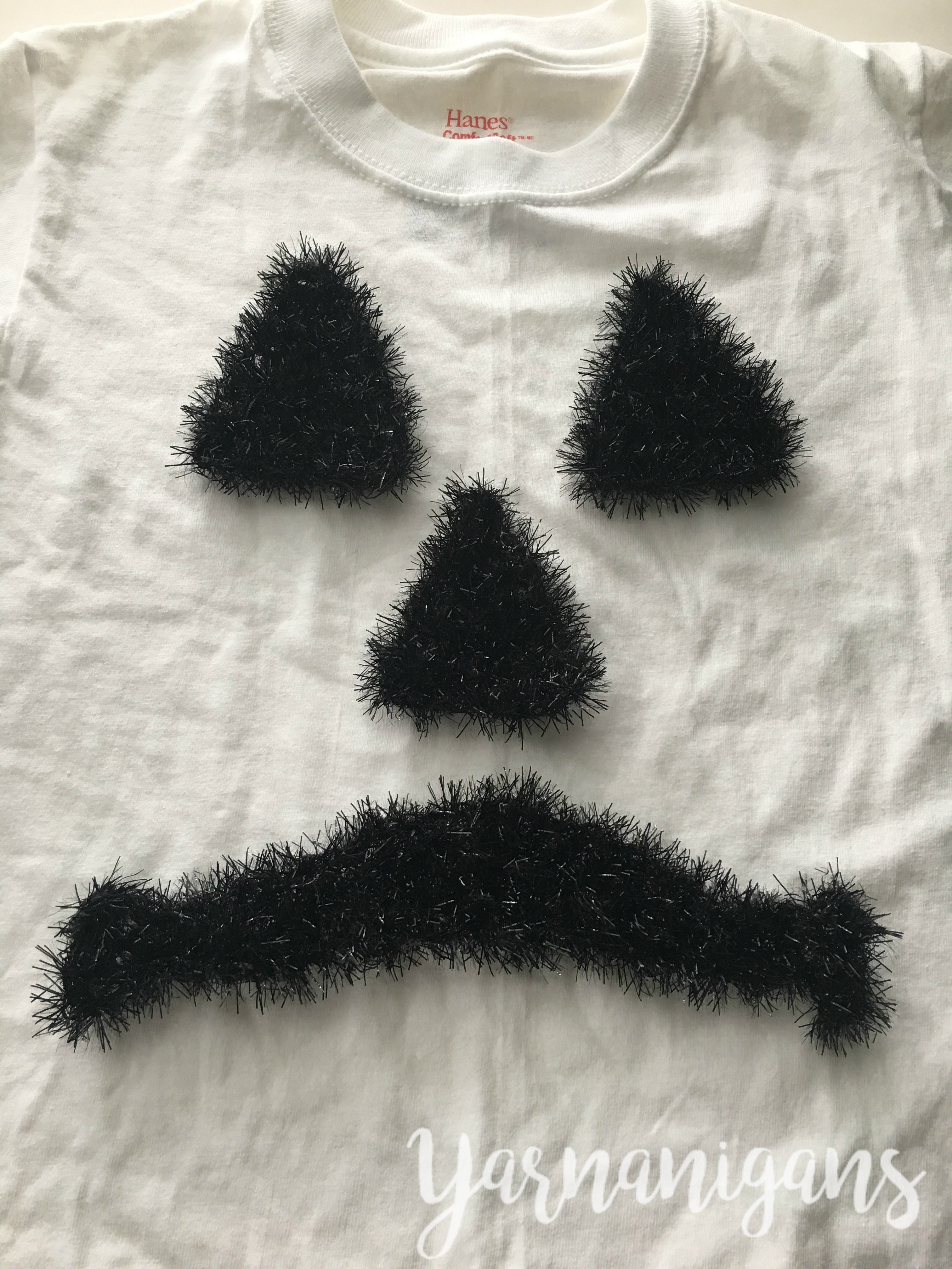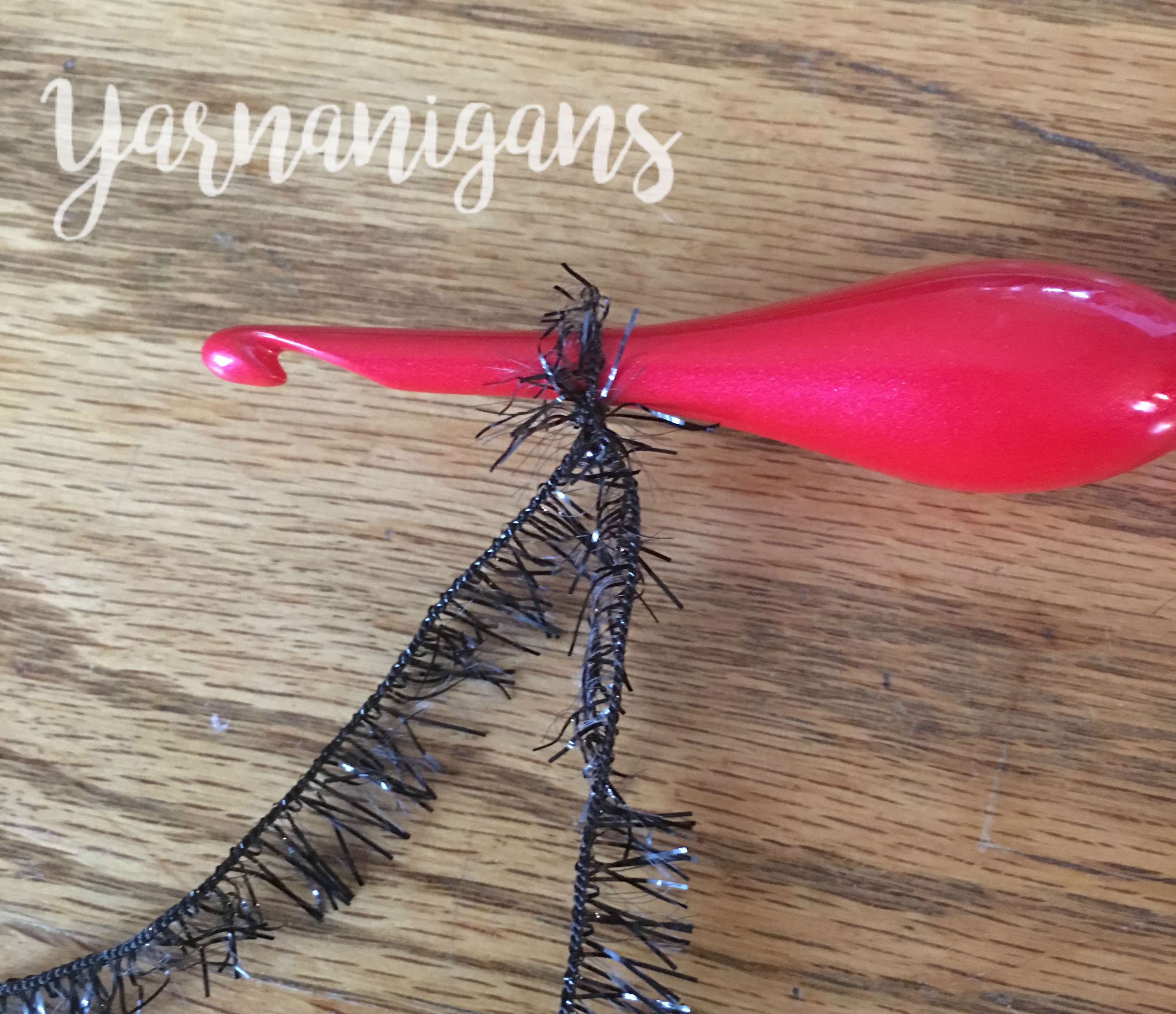 Before using Scrubby Sparkle yarn*, I was a bit skeptical about it’s ease of use and how well I’d be able to find my stitches as I crocheted. Add on the fact that it is black yarn (we all know how friendly black yarn is to use) and thus my skepticism grew. I would describe it as an “eyelash yarn” because of how it looks. The center thread of the yarn holds all the little sparkly bits and is the subtle base of the yarn used to construct the bulk of the stitches. It’s fun and shiny and exceptionally easy to crochet with, which was a happy surprise for me and helped make this project work up quick and easy!