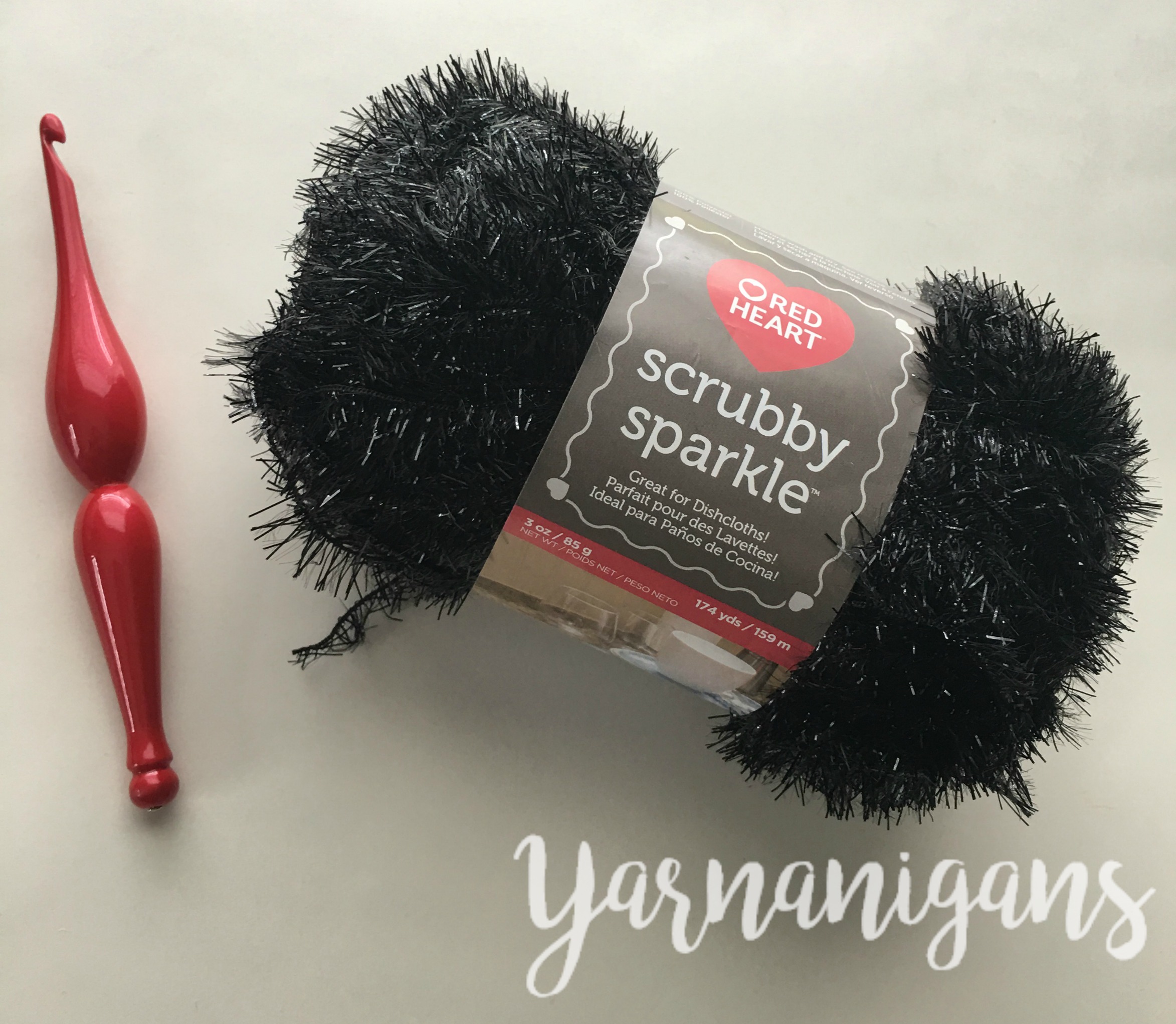 - 1 3oz skein Scrubby Sparkle by Red Heart in Licorice*