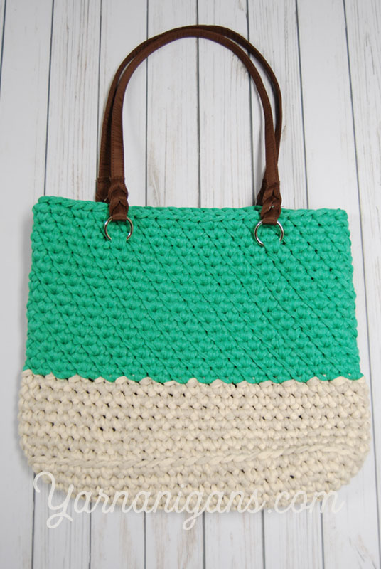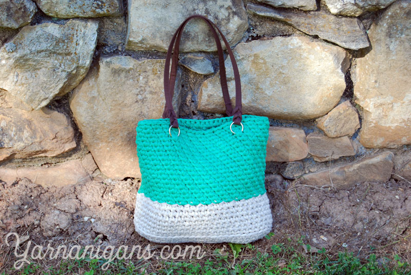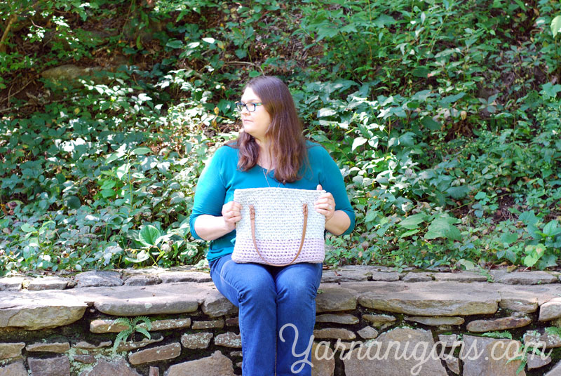 I chose Lion Brand Fast Track yarn because I wanted something similar to t-shirt yarn but not quite so heavy or chunky. Fast Track is a chainette-style yarn that works up quickly and has just the right amount of stretch. The yarn comes in a variety of colors and is made from lightweight cotton and polyester. Even though I doubled the yarn for this pattern , it doesn’t weigh the purse down but does make for a thick purse body that is super durable!